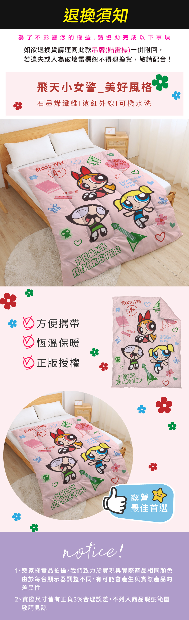 產品名稱:棉被 / 石墨烯【美好風格】150x200cm 飛天小女警 正版授權 可水洗 抗寒冬被 FW01