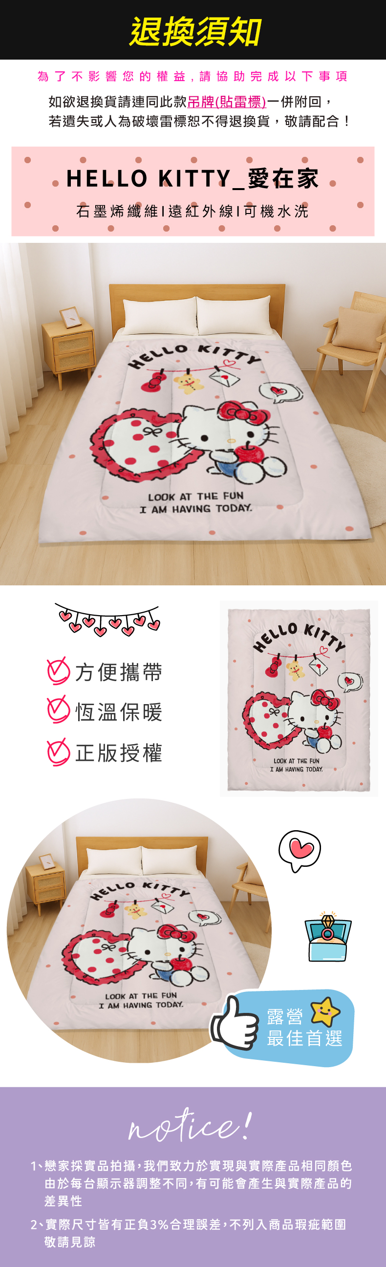 產品名稱:棉被 / 石墨烯【愛在家】150x200cm HELLO KITTY 正版授權 可水洗 抗寒冬被 FW01