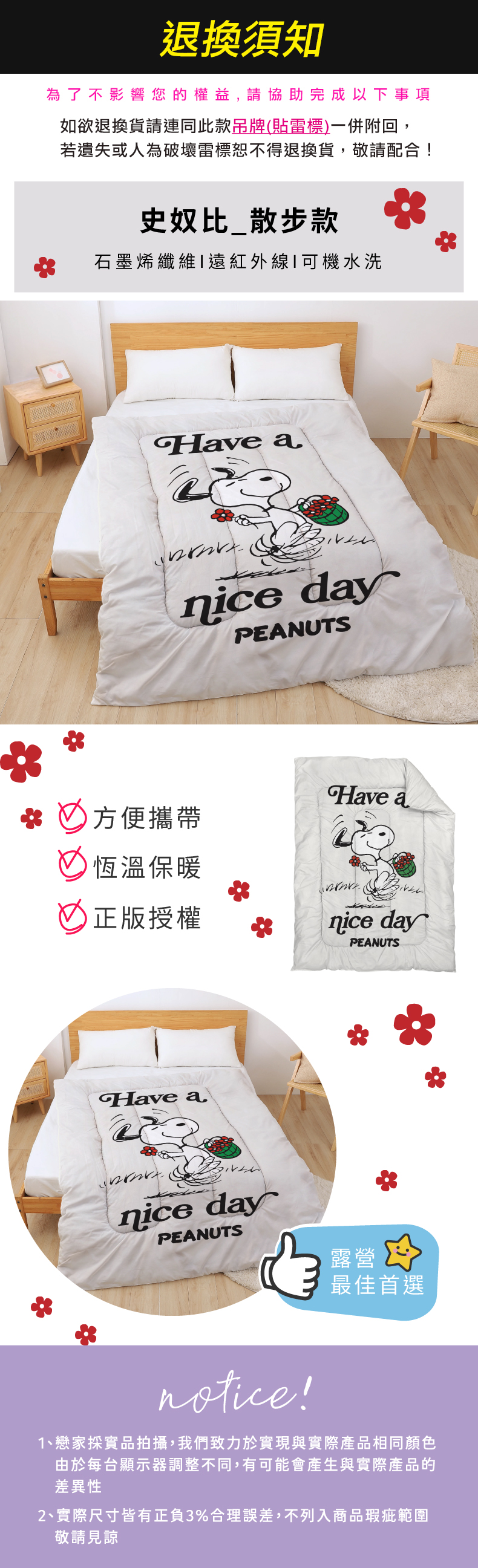 產品名稱:棉被 / 石墨烯【散步款】150x200cm SNOOPY 正版授權 可水洗 抗寒冬被 FW01
