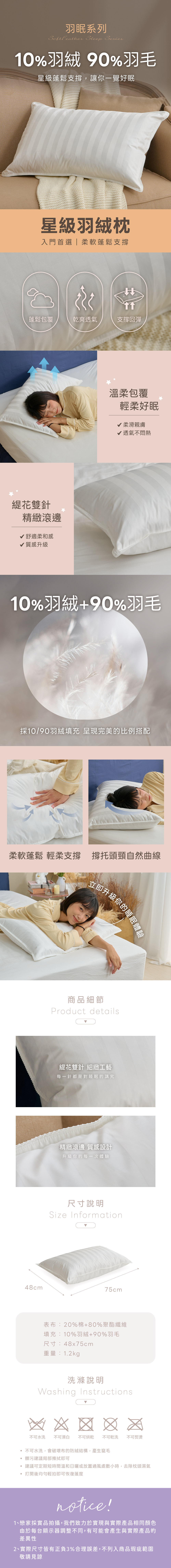 產品名稱:枕頭 / 羽絨枕【星級羽絨枕】10%羽絨 入門首選 柔軟蓬鬆支撐 羽眠系列
