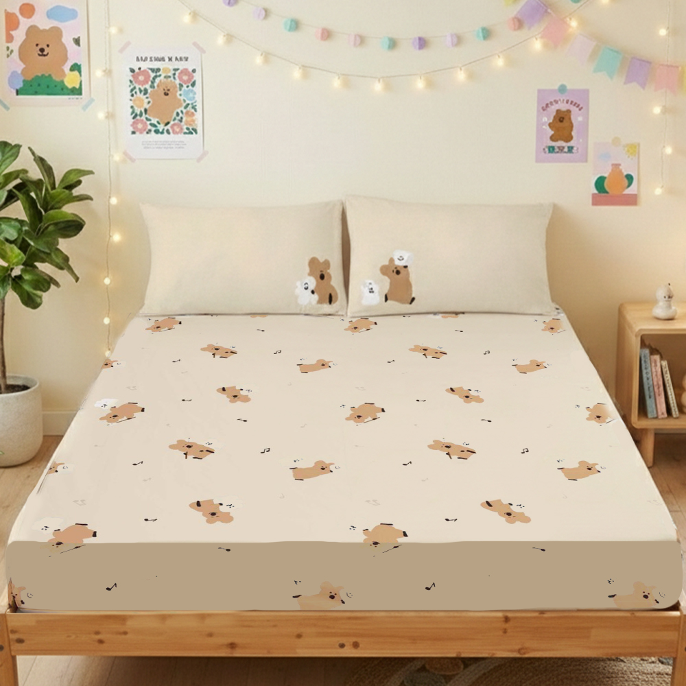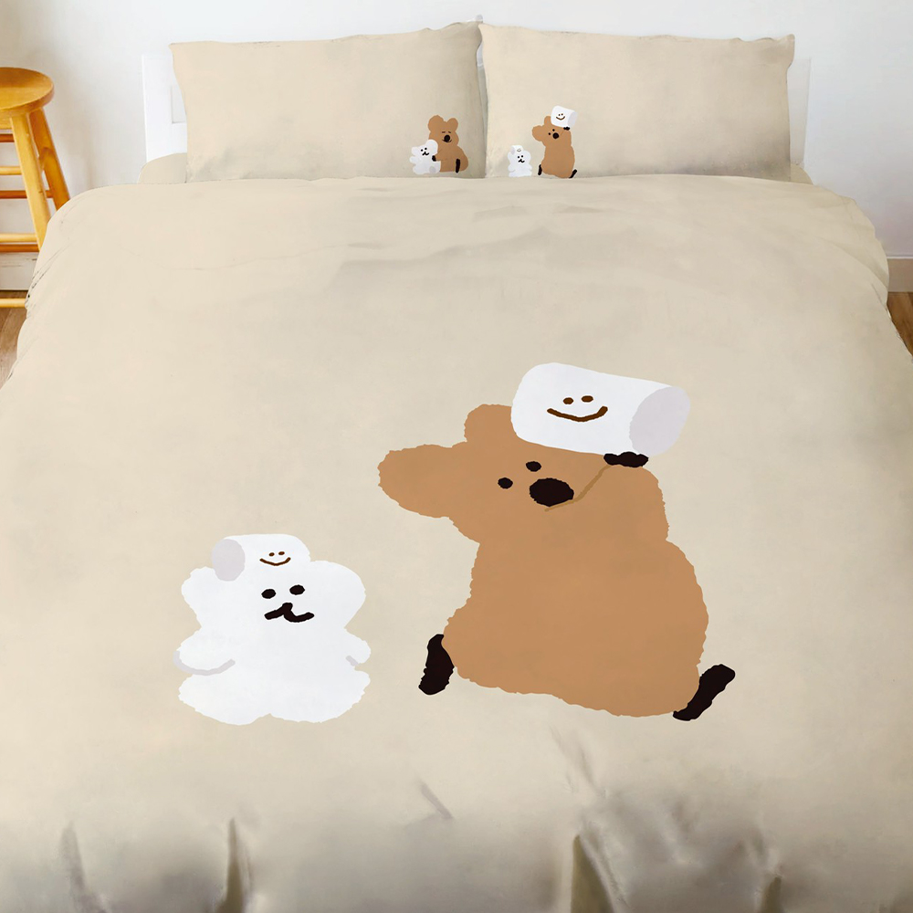 產品名稱:床包被套組 / 雙人加大【烤烤棉花糖】雙人加大床包被套組 天絲 呆萌町 Dinotaeng ABF101