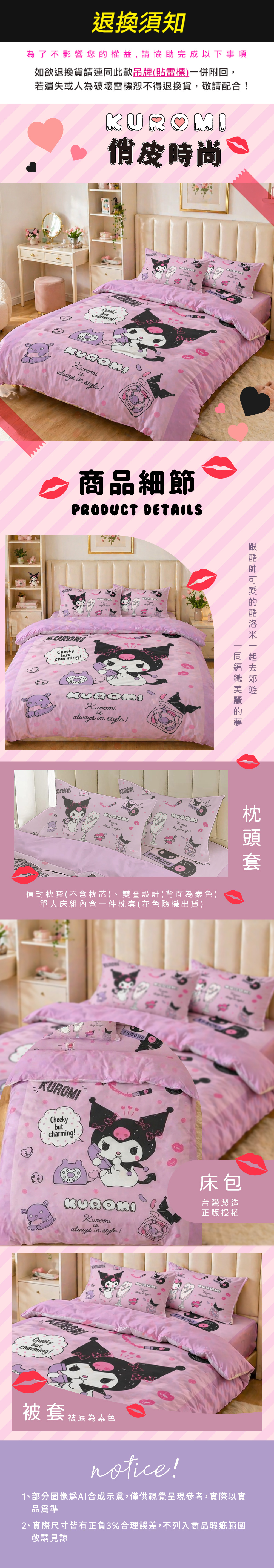 產品名稱:床包 / 單人【俏皮時尚】單人床包含一件枕套 酷洛米 三麗鷗 ABF201