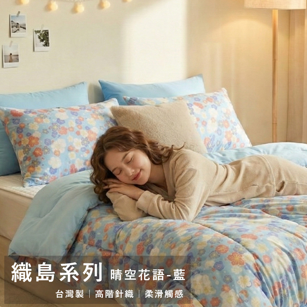 床包 / 雙人【晴空花語藍】織島系列 高階針織 雙人床包含二件枕套
