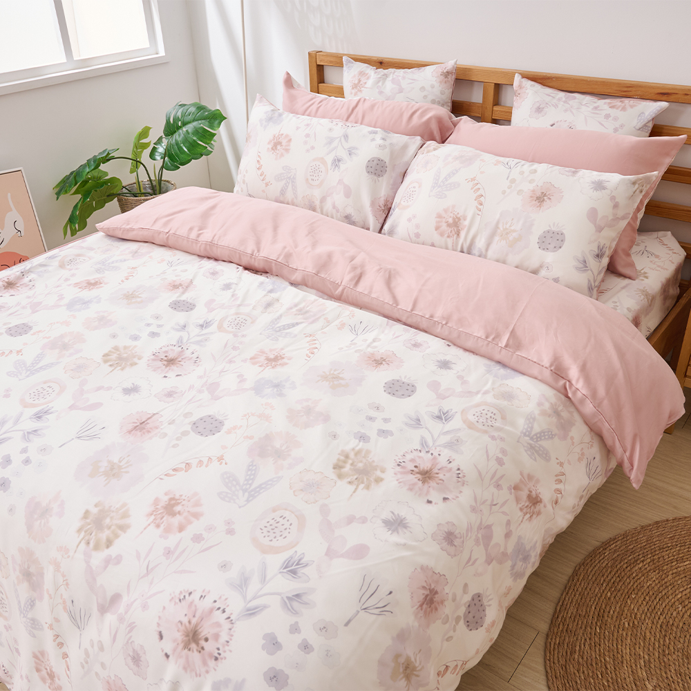 床包被套組 / 雙人特大【永恆系列-桃花粉】60支天絲 雙人特大床包被套組