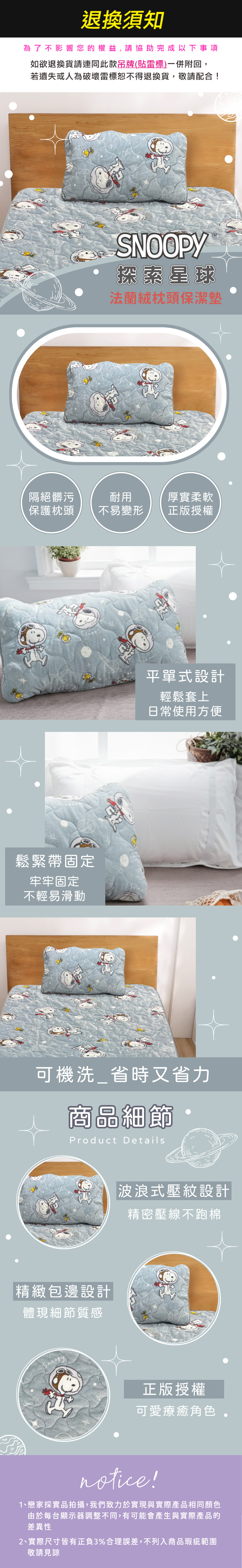 枕頭保暖墊 / 一入【探索星球】法蘭絨 枕頭保潔墊 SNOOPY 史奴比 正版授權