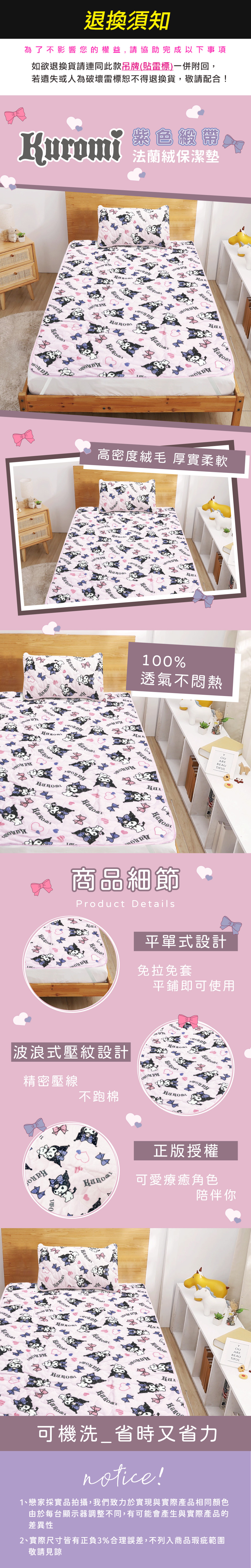 保暖墊 / 雙人【紫色緞帶】法蘭絨 保潔墊 酷洛米 正版授權 三麗鷗