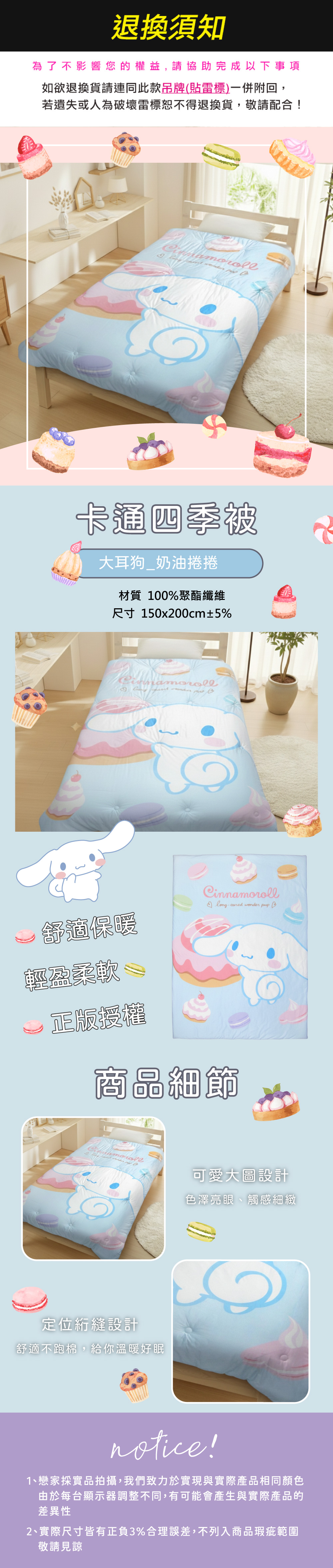 棉被 / 雙人【奶油捲捲】150x200cm 韓版棉被 針織保暖被 大耳狗 三麗鷗